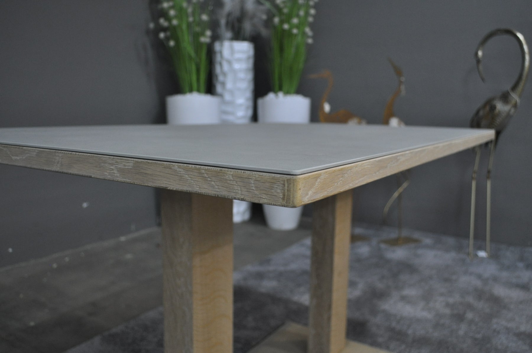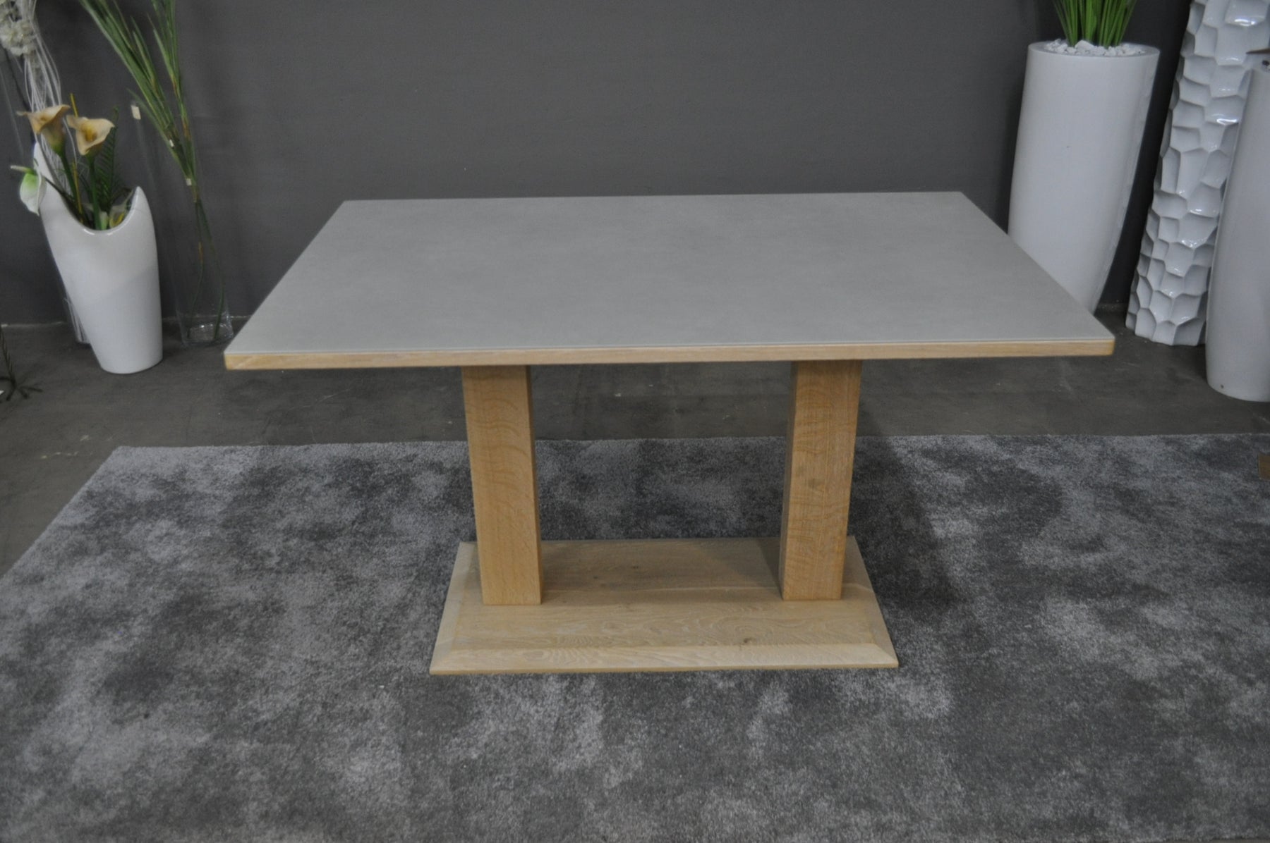 Tischplatte: Keramik auf Eiche weiß geölt